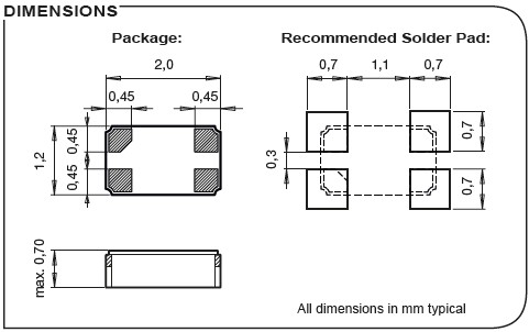 | 頻率溫度特征 | f_tem | ±30 × 10-6/-20°C ~ +70°C | 超出標準的規(guī)格請聯(lián)系我們. |