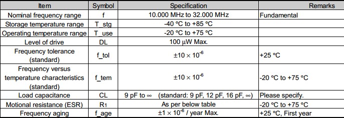 • 晶體產品可能會在某些條件下受到損壞。例如從桌上跌落或在貼裝過程中受到沖擊。如果產品已受過沖擊請勿使用。